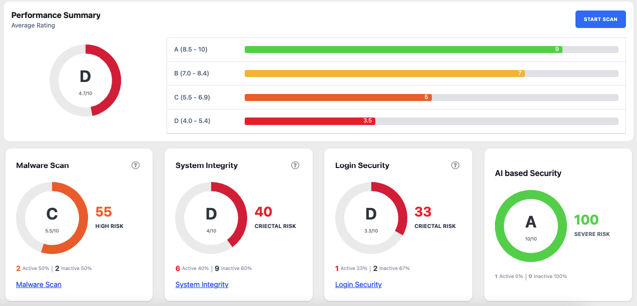 Guardian Gaze includes a built-in malware scanner that analyzes WordPress core files, plugins, and themes for suspicious or unauthorized changes.