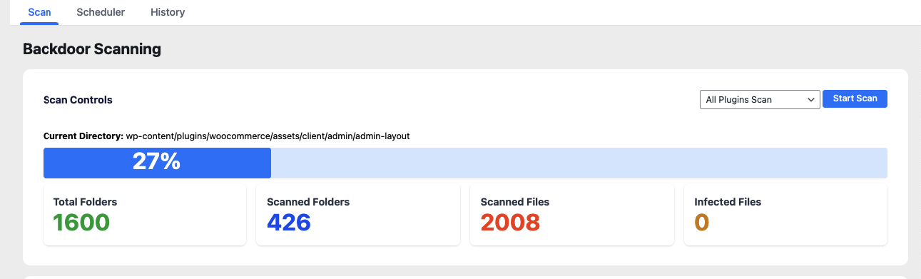 Scans leverage optimized detection logic and do not rely on heavy signature databases. All external requests are cached where possible, and no resource-intensive actions run on every page load. -