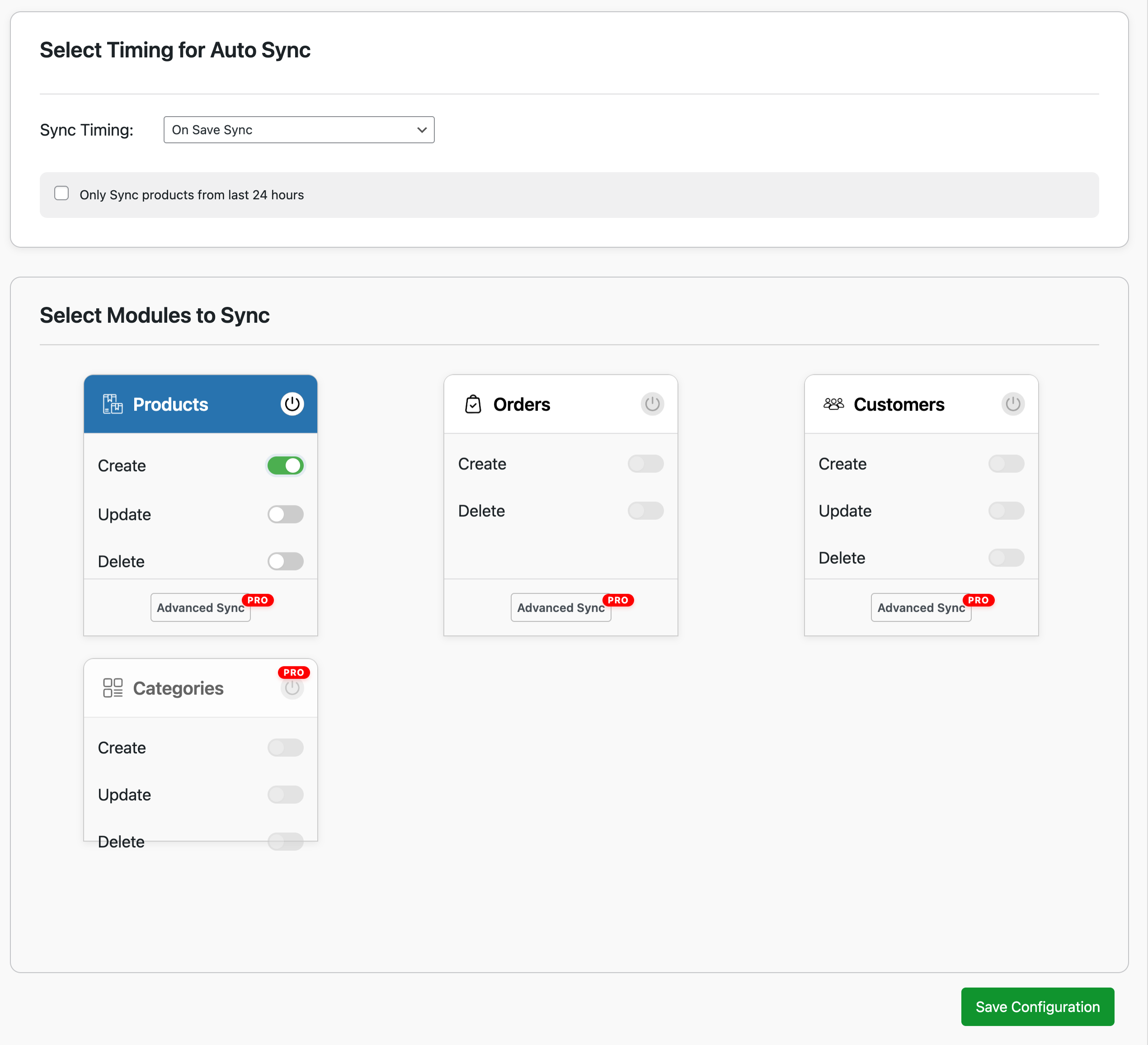 Trigger sync ‘on-save sync’ to send all the available products in WooCommerce or Shopify or run scheduled jobs (hourly, daily, weekly, or within a custom date range). W2S can also sync only the products created within the last 24 hours. -