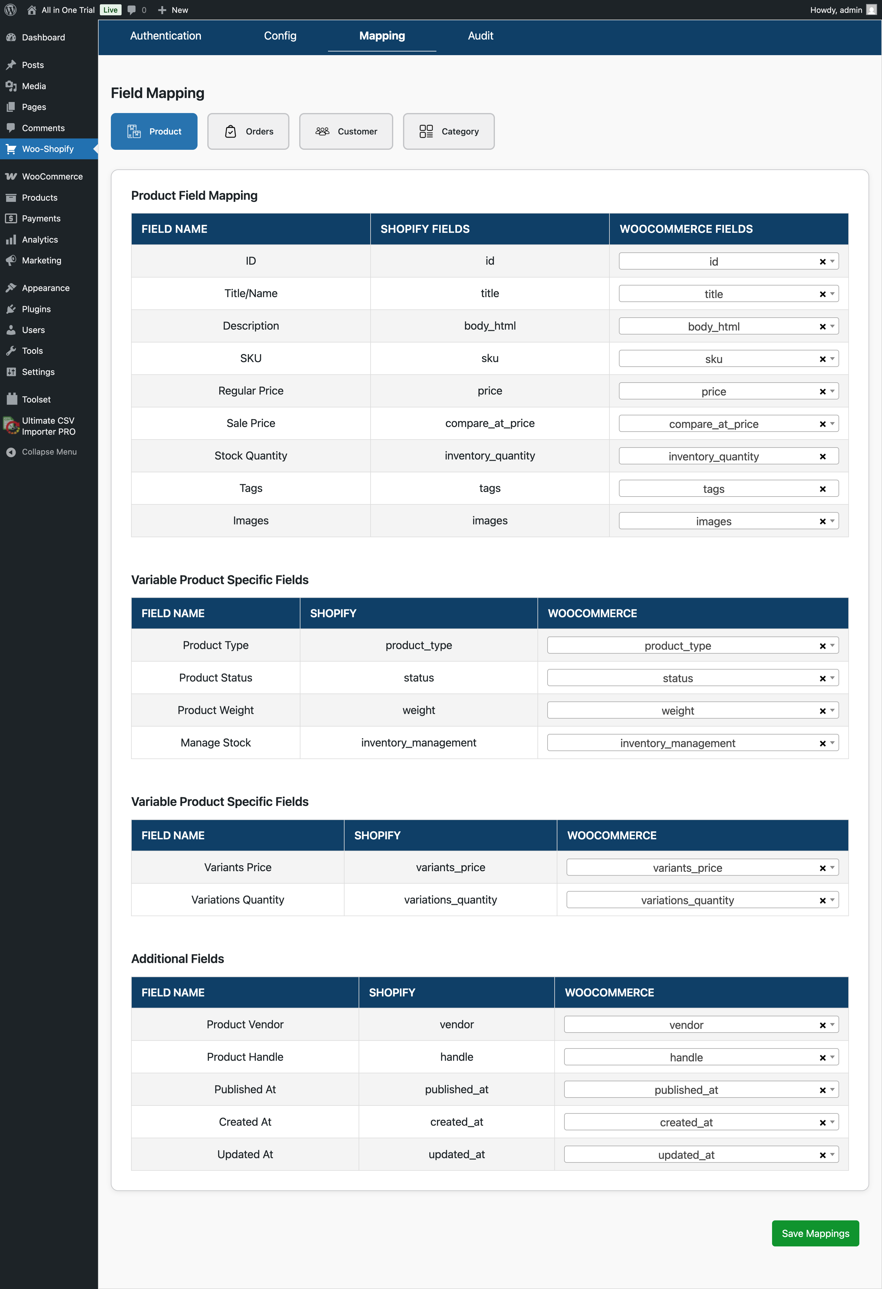 W2S automatically maps WooCommerce fields to Shopify fields, reducing manual configuration and eliminating sync mismatches. -